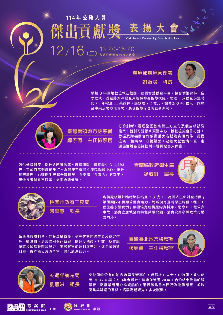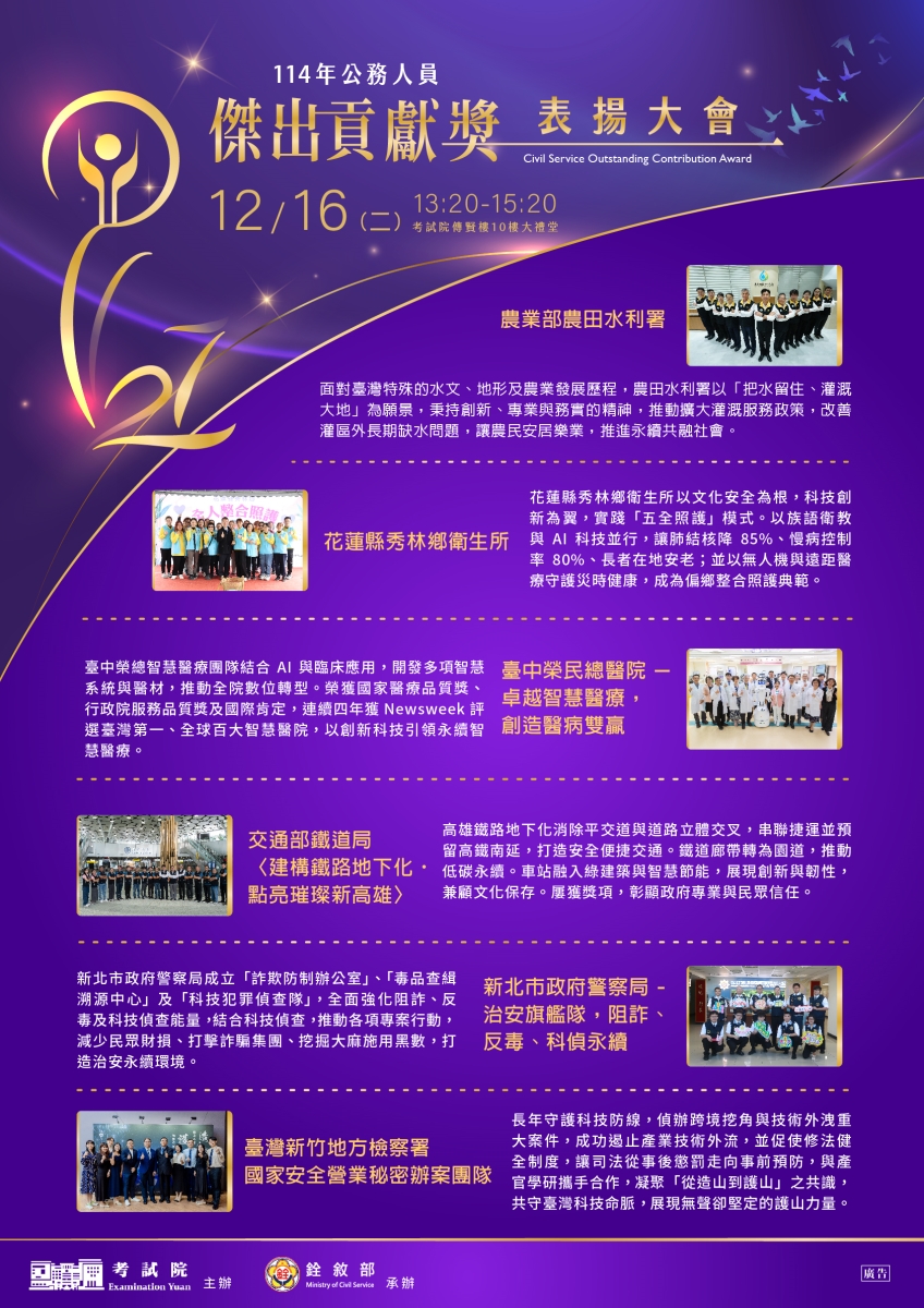 「114年公務人員傑出貢獻獎表揚大會」電子海報