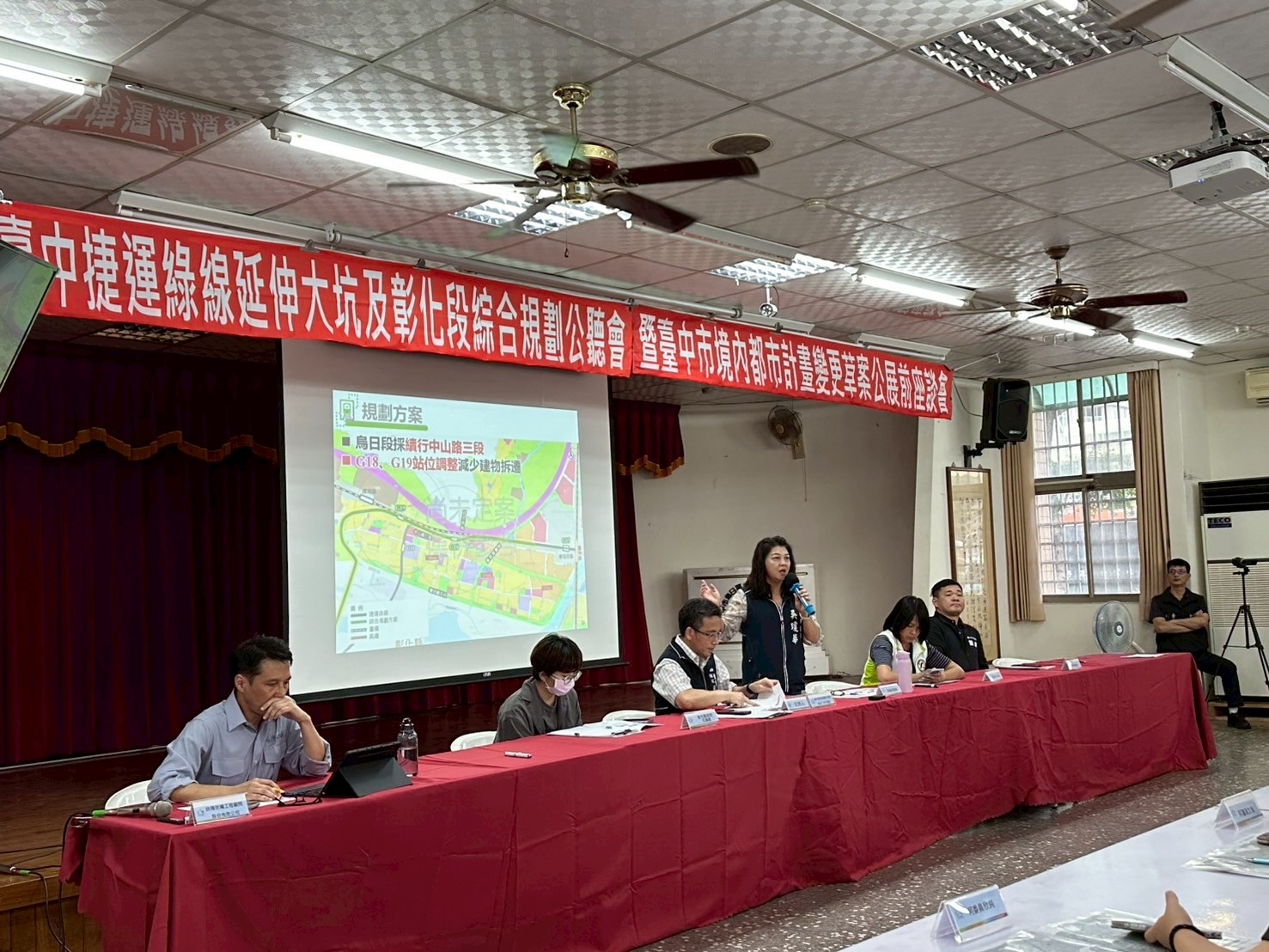 台中市政府捷運工程局自5月26日起舉辦為期三日的「捷運綠線延伸大坑及彰化段綜合規劃公聽會」,並結合都市計畫變更草案座談,捷工局表示,三場會議共吸引近300人次參與,蒐集逾65則民眾建議與提問,涵蓋車站選址、路線線形、施工影響、未來轉乘整合與在地發展潛力等面向,後續將納入綜合規劃調整與行政報核資料中。