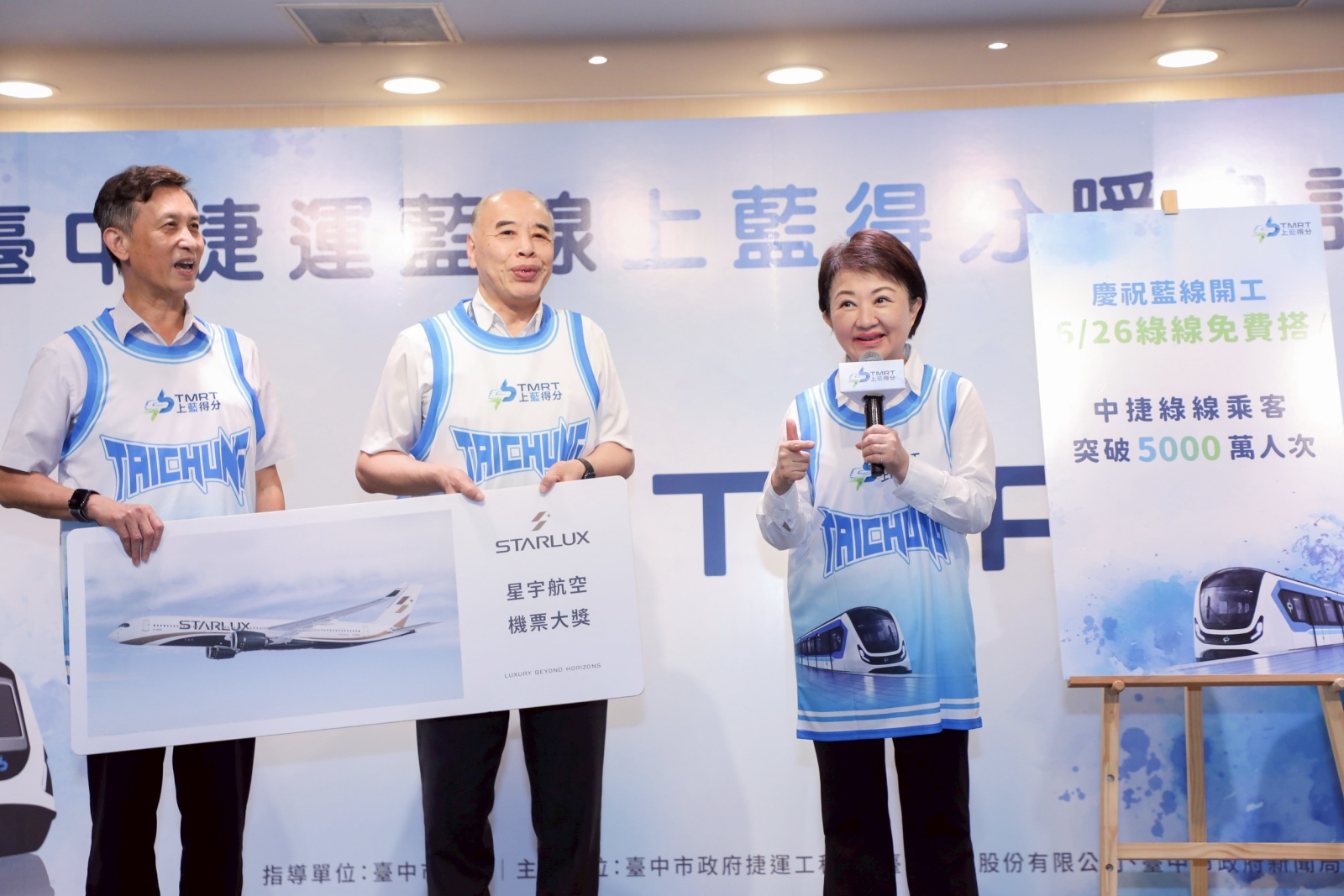 為慶祝捷運藍線的正式開工,台中市政府今(17)日在市府惠中樓9樓台中廳舉辦「台中捷運藍線上藍得分暖身記者會」,市長盧秀燕會中宣布兩則喜訊「藍線開工當日綠線免費搭乘」及「恭賀台中捷運綠線突破5,000萬搭乘人次」。她預告台中市民長期盼望的捷運藍線,將於6月26日正式開工,歡迎市民朋友共同參與捷運藍線盛大的開工典禮,並宣布當天捷運綠線全線免費搭乘的優惠,讓每位市民都能體驗這份交通便利的喜悅。